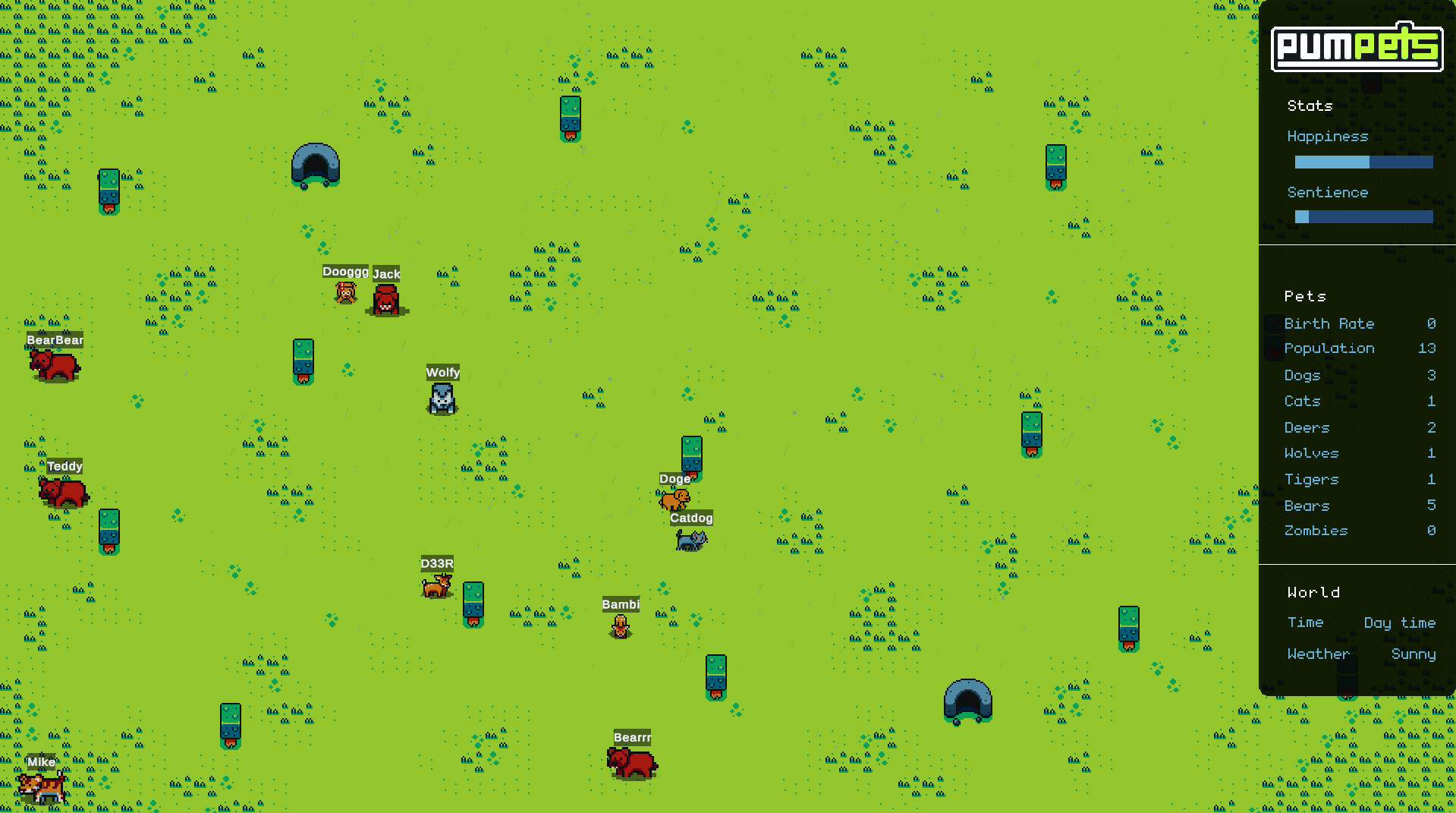 Build a fully autonomous pet ecosystem where multiple online users can spawn pets through a WebGL interface while all animals interact through complex AI states such as breeding, hunting, feeding, and social behavior. The system needed to synchronize real-time data across players without the official Firebase SDK (not WebGL-compatible) and support 20+ AI-driven entities at 144 FPS.